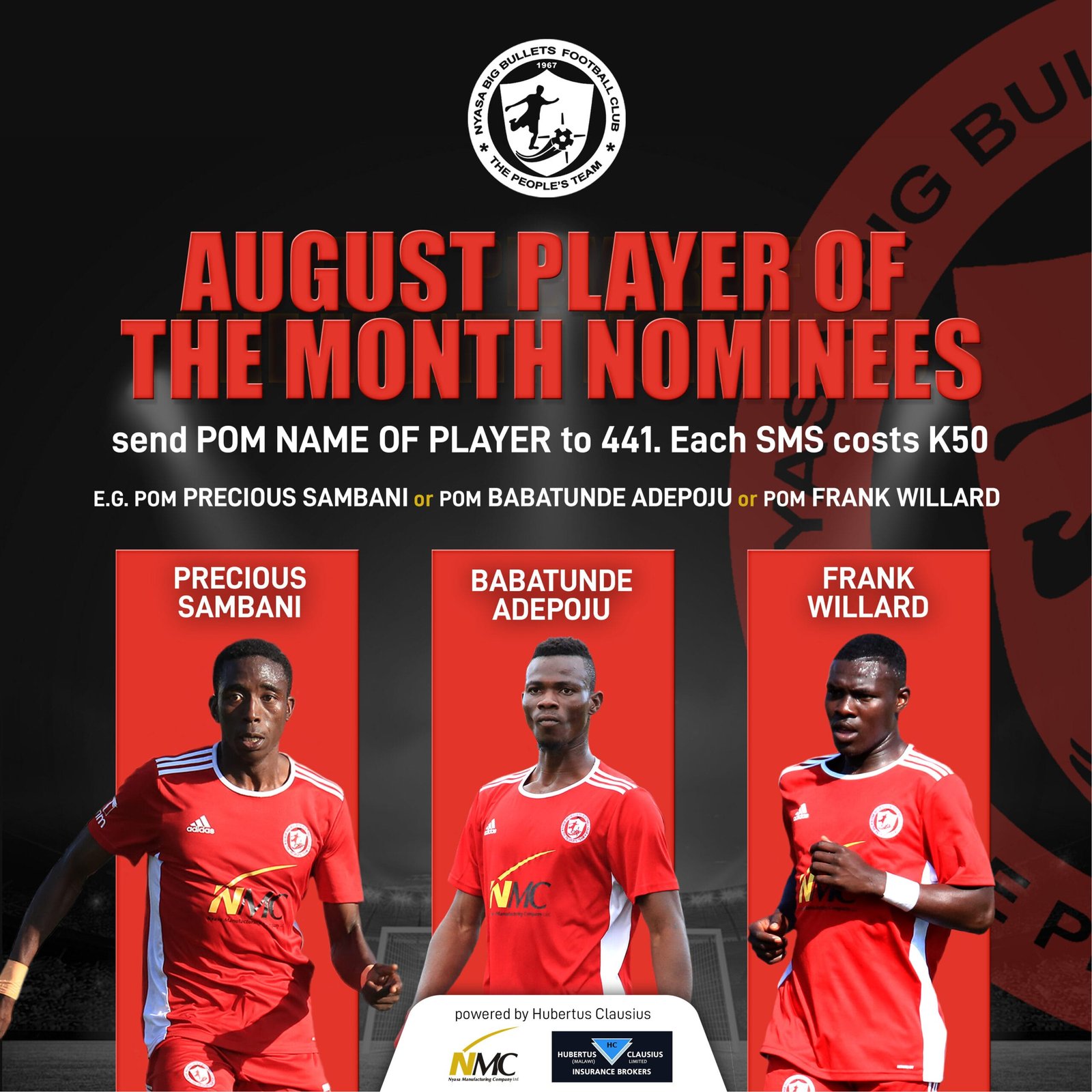 In recognition of his exceptional performances, Nickson Nyasulu has been honoured with the Hubertus Clausius Player of the Month award for August.