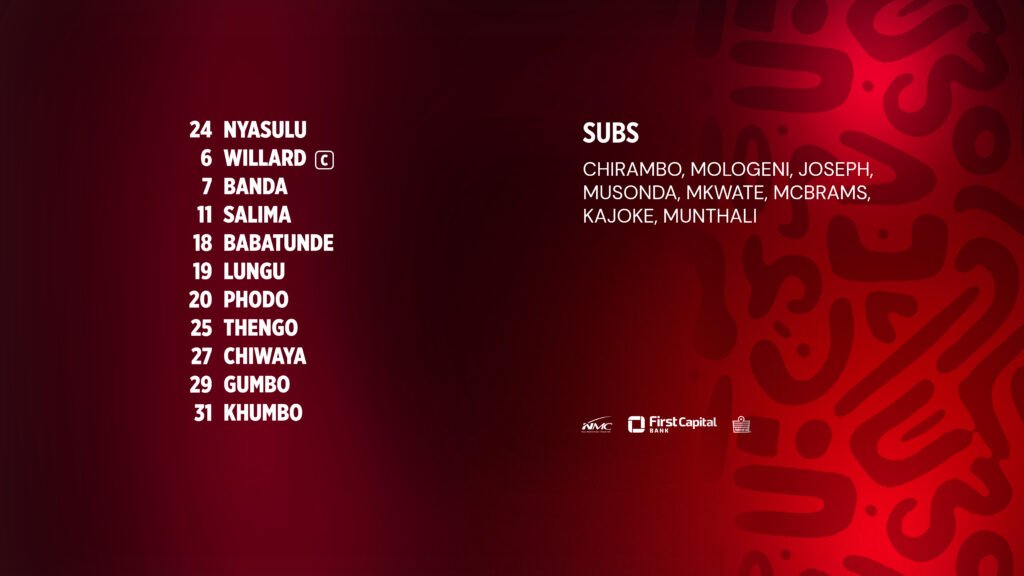 Innocent Nyasulu returns between the posts, replacing Richard Chimbamba. A back three of Khumbo Banda, youngster Edward Thengo, and Henry Chiwaya will anchor the defence.