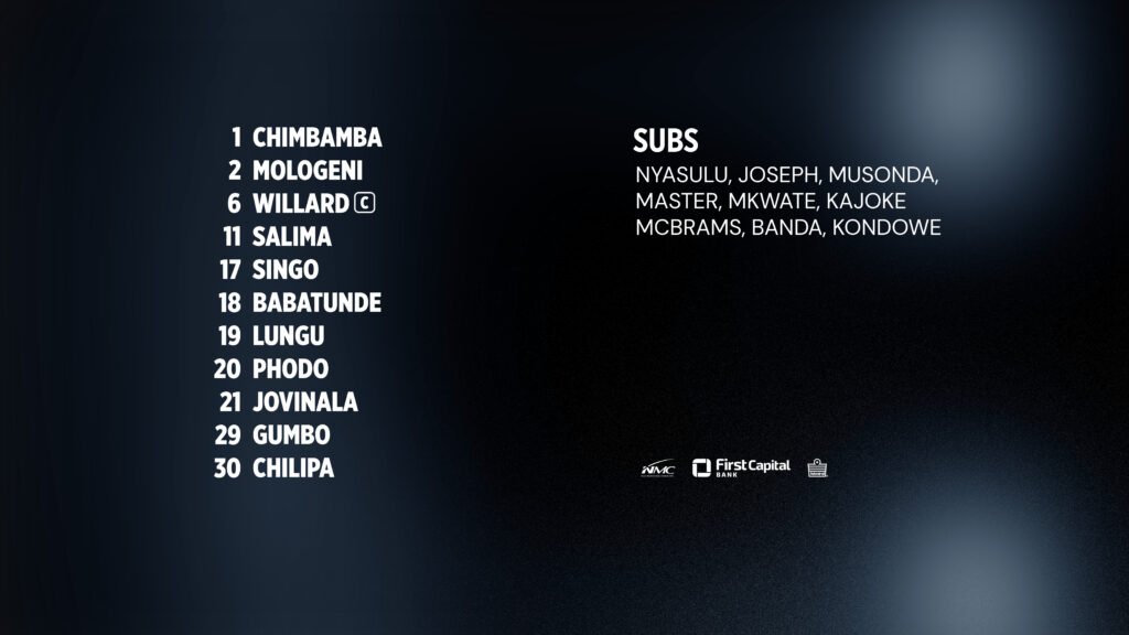 Mponda has made several adjustments from the team that started in last Sunday’s 2-0 loss to Creck Sporting Club, giving the squad fresh legs while retaining key performers. Players such as Innocent Nyasulu, Paul Master, Peter Banda, and Ephraim Kondowe start on the bench, ready to make an impact if called upon.